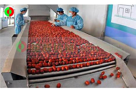 紅棗清洗烘干生產線,從紅棗的加熱浸泡清洗,然后風干,最后烘干成品一條流水線完成,無需太多人工干預。省人力產能大,適合大型果蔬加工生產中心使用。